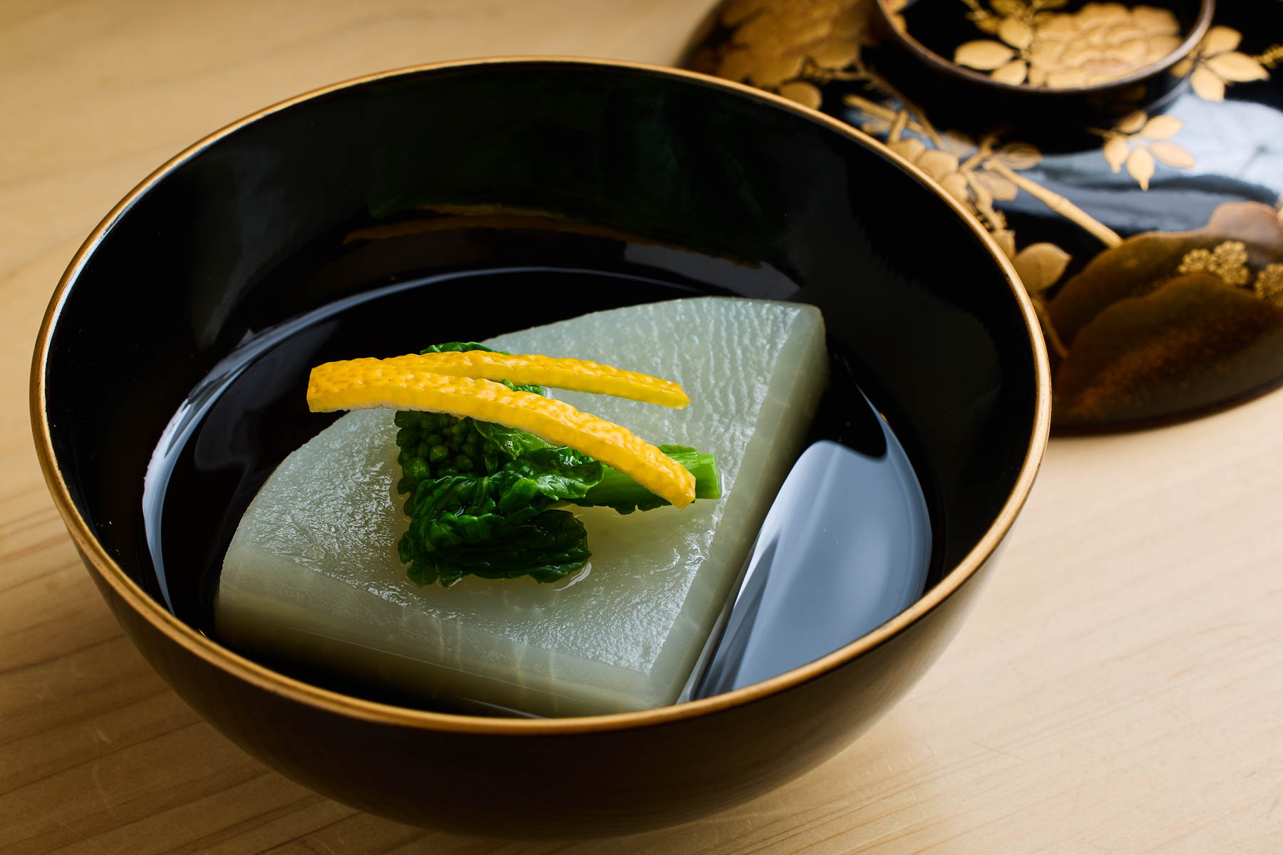 Tucked away in Tokyo’s historic neighborhood, Ningyocho Kawada offers a deeply personal take on Japanese cuisine. Opened in 2019, the restaurant is the vision of Haruji Kawada, who spent 13 years at Ginza’s Iyuki before setting out on his own. His signature dishes, such as simmered Yodo daikon and taro stalks, highlight the deep umami of the carefully prepared dashi. The omakase menu here changes monthly, reflecting the shifting seasons.
